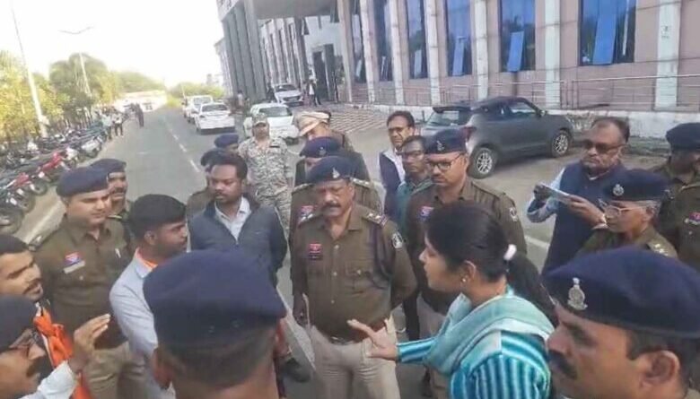 सूरजपुर। जिले के रामानुजनगर के प्राइवेट स्कूल में केजी-टू के छात्र को होमवर्क न करने पर पेड़ से लटकाने और मसिरा हाईस्कूल के छात्रों के पांच मिनट देर से आने पर बेग फेंकने के मामले में आज अखिल भारतीय विद्यार्थी परिषद (एबीवीपी) ने हल्ला बोला। एबीवीपी के कार्यकर्ता जिला शिक्षा अधिकारी को ज्ञापन देने पहुंचे और कार्यालय में जबरन प्रवेश करने की कोशिश के दौरान कलेक्टर के मेन गेट को तोड़ दिया। इसके बाद गेट के सामने बैठकर डीईओ के खिलाफ नारेबाजी कर जिला शिक्षा अधिकारी को बाहर बुलाने की मांग की। घटना के बाद मौके पर पुलिस बल तैनात किया गया। गुस्साई एसडीएम शिवानी जायसवाल ने घटनास्थल पर पहुंचकर कार्यकर्ताओं को आग लगाने जैसी निंदनीय हरकत से रोकने की चेतावनी दी।