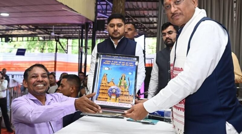 रायपुर। भिलाई निवासी अंकुश देवांगन ने आज जनदर्शन के दौरान सीएम विष्णु देव साय को एक विशेष फ्रेम भेंट किया। इसमें संगमरमर को बारीकी से तराशकर बनाई गई पीएम नरेंद्र मोदी की छोटी प्रतिमा लगी हुई है। फ्रेम के पीछे अयोध्या स्थित नवनिर्मित श्री रामलला मंदिर की भव्य प्रतिकृति भी उकेरी गई है। इस अद्भुत कृति को देखकर सीएम ने श्री देवांगन की प्रशंसा कर उन्हें शुभकामनाएं दीं।