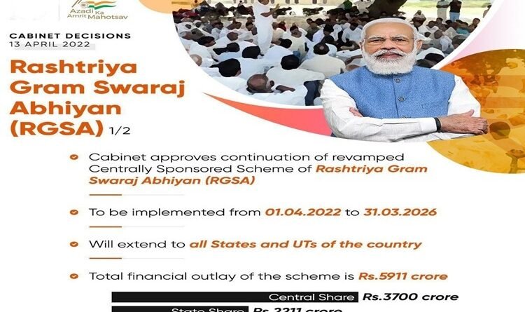 राष्ट्रीय ग्राम स्वराज अभियान की संशोधित योजना को इस वर्ष पहली अप्रैल से 31 मार्च 2026 तक जारी रखने की स्वीकृति
