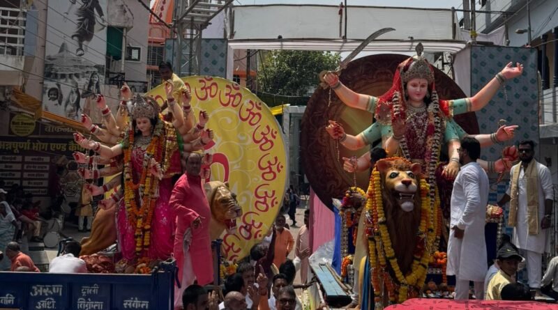 दुर्ग:- छत्तीसगढ़ की धर्मिक नगरी दुर्ग के गंजपारा में स्थित श्री सत्तीचौरा दुर्गा मंदिर एवं पुरानी गंजमडी गंजपारा में इस क्वांर पर्व में माता जी को पंडाल में विराजमान कटने के पूर्व विगत 48 वर्षों की परम्परानुसार दोनों बहनों पुरानी गंजमण्डी में विराजमान होने वाली माता बड़ी बहन एवं सत्तीचौरा में विराजमान होने वाली माता छोटी बहन को पंडाल में स्थापित करने के पूर्व नगर भ्रमण के दौरान एक स्थान पर मिलाया गया।