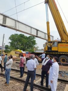 तीन घंटे के लिए ब्लाॅक की मिली अनुमति, ओवरब्रिज में चढ़ाए गए तीन गर्डर जायजा लेने पहुंचे संसदीय सचिव, निर्माण को लेकर ली जानकारी