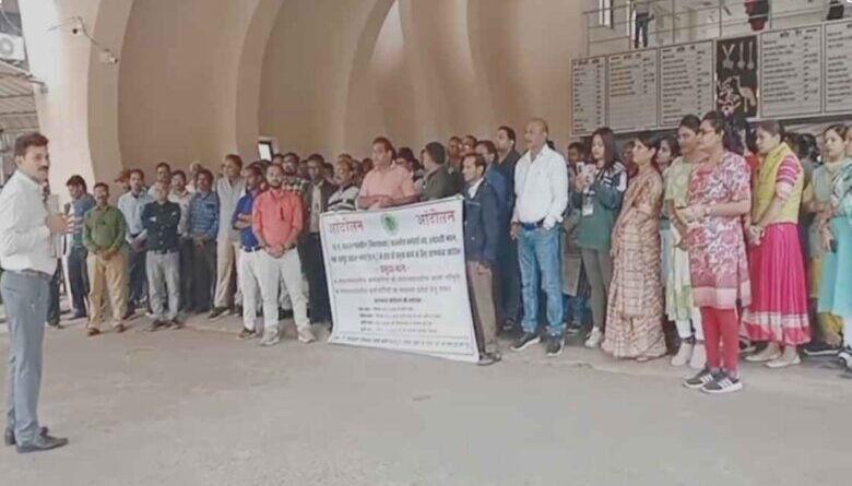 संचालनालय कर्मचारियों ने काली पट्टी लगाकर किया प्रदर्शन