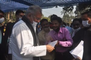 रायगढ़ :- मुख्यमंत्री भूपेश बघेल रायगढ़ जिले के प्रवास के दूसरे दिन आज बंगुरसिया धान खरीदी केन्द्र पहुंचे और किसानों से रूबरू होते हुए धान खरीदी की जानकारी ली।