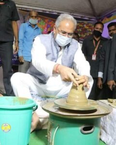मुख्यमंत्री ने स्वयं चॉक चलाकर बनाया मिट्टी का दीया