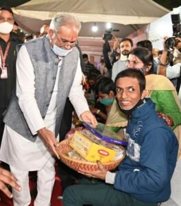 बिहान स्टॉल में मुख्यमंत्री ने बालिका गृह की अनाथ बालिकाओं को उनके द्वारा राखी पर्व के अवसर पर बनाए गए राखियों के विक्रय से प्राप्त राशि से स्मार्ट फोन और हाथ घड़ियां प्रदान की। श्री बघेल ने इस अवसर पर आकांक्षा संस्था के 7 बच्चों, कोपलवाणी से 27 बच्चों, नवयुग दिव्यांग संस्था के 6 महिलाओं और बच्चों और बालिका गृह के बालिकाओं, नारी निकेतन की 6 परित्यक्त महिलाओं सहित 50 से अधिक बच्चों एवं महिलाओं को दीपावली उपहार के रूप में दीया, पूजन-सामग्री, चॉकलेट और सजावट की अन्य सामग्रियां प्रदान की।