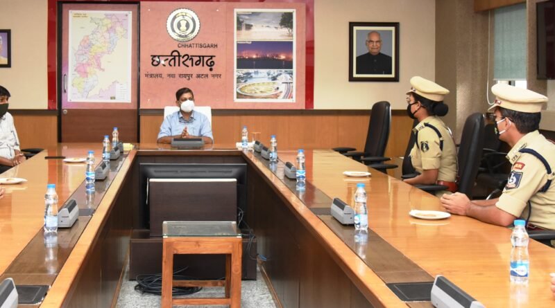 रायपुर :- मुख्य सचिव अमिताभ जैन से आज मंत्रालय महानदी भवन में उनके कक्ष में भारतीय पुलिस सेवा बैच 2018 और 2019 के छत्तीसगढ़ केडर के प्रशिक्षु अधिकारियों ने मुलाकात की।