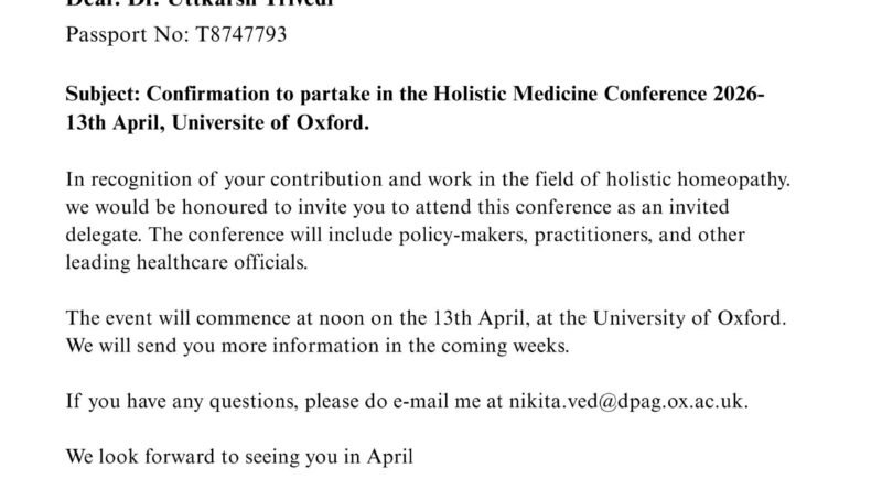 अंतरराष्ट्रीय मंच पर रखेंगे भारत का पक्ष: लंदन में आयोजित इस सम्मेलन में डॉ. उत्कर्ष त्रिवेदी होम्योपैथी की उपयोगिता, प्रभावशीलता और भारत में इसके महत्व को वैश्विक स्तर पर प्रस्तुत करेंगे। यह उपलब्धि न केवल उनके लिए बल्कि पूरे छत्तीसगढ़ और देश के लिए गौरव का विषय है।