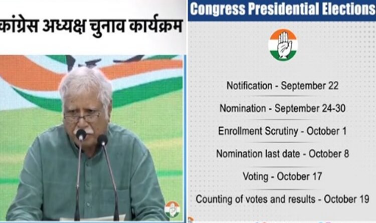 कांग्रेस अध्‍यक्ष पद के लिए चुनाव 17 अक्‍टूबर को होगा