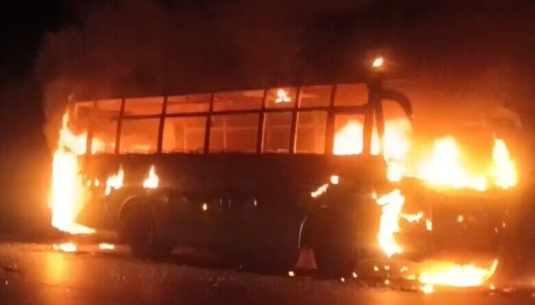 बारातियों से भरी चलती बस में लगी आग