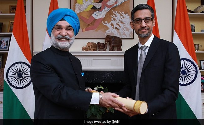 अमरीका में भारत के राजदूत ने गूगल के मुख्य कार्यकारी अधिकारी सुंदर पिचाई को पद्म भूषण से सम्मानित किया
