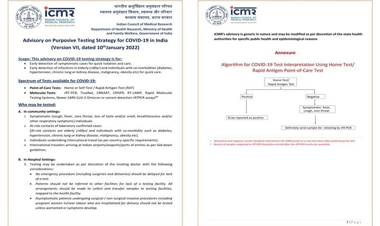 सरकार ने कहा–संक्रमित लोगों के सम्पर्क में आने वालों के लिए, जब तक अधिक जोखिम न हो, कोविड जांच की आवश्यकता नहीं