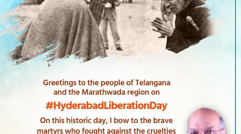 हैदराबाद रियासत के भारतीय संघ में ऐतिहासिक विलय के उपलक्ष्य में आज हैदराबाद मुक्ति दिवस मनाया जा रहा है