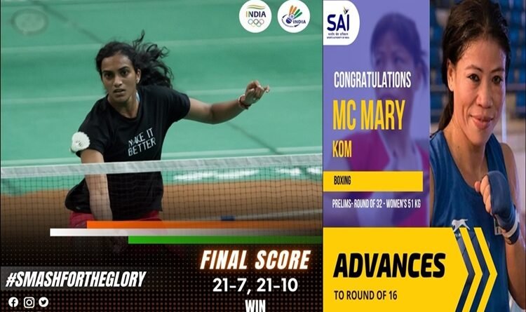 बैडमिंटन में पीवी सिंधु ने ग्रुप स्टेज में अपना पहला मुकाबला जीता, मुक्केबाजी में एम.सी. मेरीकॉम ने प्रीक्वार्टरफाइनल में जगह बनाई