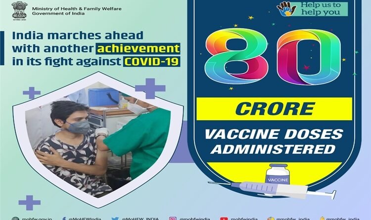 भारत ने कोविड महामारी से लडाई में ऐतिहासिक उपलब्धि हासिल करते हुए 80 करोड से अधिक कोविड टीके लगाने का आंकडा पार कर लिया है।