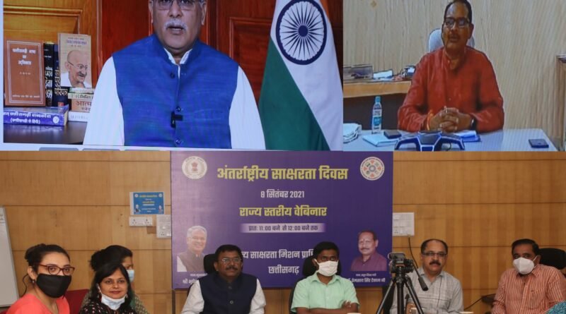 रायपुर :- मुख्यमंत्री भूपेश बघेल ने आज ‘अंतर्राष्ट्रीय साक्षरता दिवस‘ आयोजित राज्य स्तरीय वेबीनार में कहा कि वास्तव में अक्षर ज्ञान वह पहला द्वार है, जहां से भविष्य के अनंत रास्ते खुलते हैं। साक्षरता से शिक्षा और शिक्षा से विकास का सीधा संबंध है।
