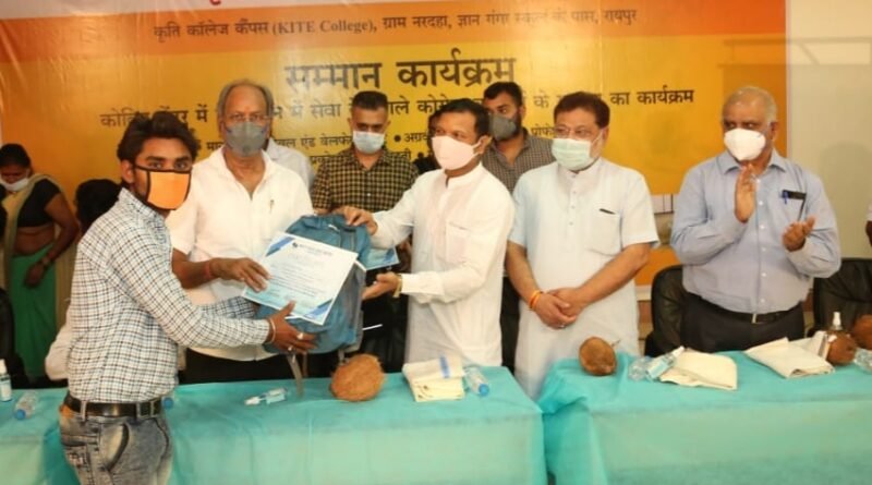 कृति कोविड केयर सेंटर में सेवा देने वाले कोरोना वारियर्स का सम्मान