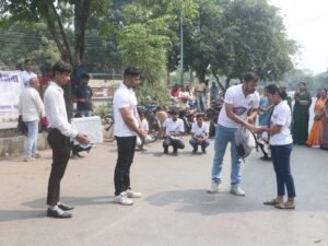 रायपुर | महंत लक्ष्मीनारायण दास महाविद्यालय रायपुर के राष्ट्रीय सेवा योजना इकाई द्वारा मतदाता जागरूकता रैली और नुक्कड़ नाटक का आयोजन किया गया। जागरुकता रैली महंत महाविद्यालय परिसर से प्रारंभ होकर सिटी कोतवाली, नगर निगम, महिला थाना से गांधी मैदान में नुक्कड़ नाटक की प्रस्तुति के साथ हुई नाटक के माध्यम से किसी भी प्रकार के लोभ व फ़र्ज़ी वादे से दूर रहने की शिक्षाप्रद अभिव्यक्ति की गई ।
