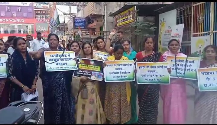 प्रदर्शनकारियो का आरोप है कि राज्य में भाजपा सरकार के 1 साल के कार्यकाल के दौरान लगातार चोरी,डकैती,लूट,बलात्कार जैसी अपराधी गतिविधियां बड़ी है। इसके अलावा राज्य में बलात्कार की संख्याएं 600 से अधिक है। महिलाओं का आरोप है कि भाजपा के राज्य में कानून व्यवस्था ठीक है, लेकिन अफसोस छत्तीसगढ़ के कवर्धा जिले के पंडरिया में एबीपी कार्यकर्ताओं व एसडीएम के बीच मारपीट हुई। इसके अलावा एक पेड़ मां के नाम लगाने की बात राज्य सरकार कह रही वहीं दूसरी छत्तीसगढ़ के हसदेव में पेड़ों की अवैध कटाई की जारही है। यह बीजेपी का सिर्फ ढकोसला है। किसानों को लूटने में भी है सरकार पीछे नहीं है। ₹3100 देने की बात करते हुए राज्य सरकार ₹2300 में धान खरीदी कर पैसा दे रही है।