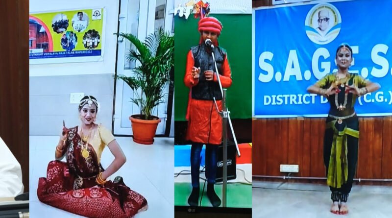 स्वामी आत्मानंद शासकीय अंग्रेजी माध्यम स्कूल के बच्चों ने आज देश के 75वें स्वतंत्रता दिवस के अवसर पर सांस्कृतिक कार्यक्रमों की प्रस्तुति के माध्यम से छत्तीसगढ़ की लोकसंस्कृति और शास्त्रीय नृत्य-संगीत की अनुपम छटा बिखेरी। अलग-अलग स्कूल के बच्चों ने अपने विद्यालय से वर्चुअल रुप से शानदार प्रस्तुति दे कर अतिथियों का दिल जीत लिया।
