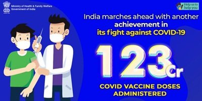 भारत में कोविड-19 टीकाकरण का समग्र कवरेज 123.25 करोड़ के पार