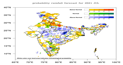 देश में जुलाई में मासिक वर्षा कुल मिलाकर सामान्य रहने की संभावना है