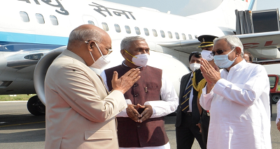 नई दिल्ली :- राष्ट्रपति राम नाथ कोविंद कल दोपहर बाद तीन दिवसीय बिहार दौरे पर पटना पहुंचे। राज्यपाल फागु चौहान, विधानसभा अध्यक्ष विजय कुमार सिन्हा, मुख्यमंत्री नीतीश कुमार तथा कई गणमान्य व्यक्तियों ने राष्ट्रपति का हवाई अड्डे पर स्वागत किया।