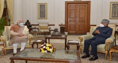 नई दिल्ली :- प्रधानमंत्री नरेन्‍द्र मोदी ने आज राष्‍ट्रपति भवन में राष्‍ट्रपति रामनाथ कोविंद से मुलाकात की।
