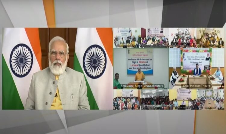 प्रधानमंत्री नरेन्द्र मोदी ने त्रिपुरा में प्रधानमंत्री आवास योजना-ग्रामीण के लाभार्थियों को 700 करोड़ रुपये से अधिक की पहली किस्त जारी की