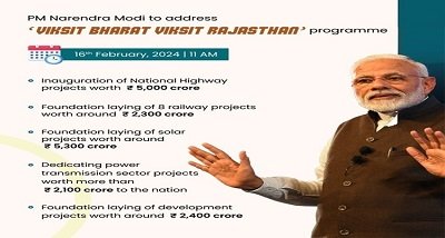 प्रधानमंत्री नरेंद्र मोदी आज विकसित भारत विकसित राजस्थान कार्यक्रम को संबोधित करेंगे