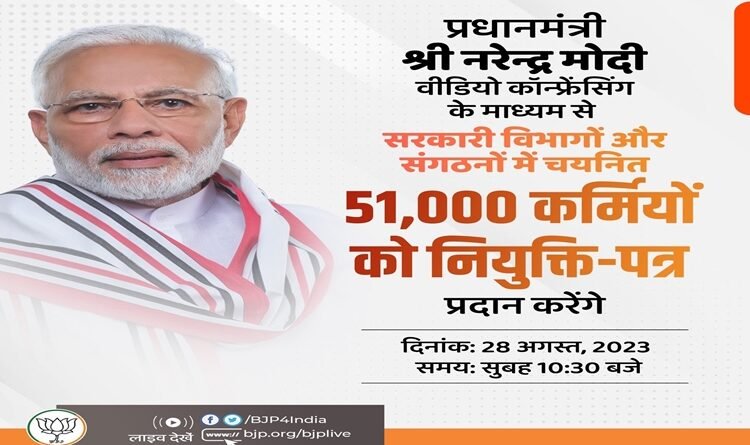 प्रधानमंत्री नरेन्द्र मोदी आज वीडियो कॉंफ्रेस के माध्यम से 51 हजार नव नियुक्त कर्मियों को नियुक्ति पत्र प्रदान करेंगे
