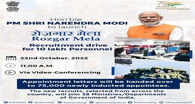 प्रधानमंत्री नरेंद्र मोदी आज 10 लाख लोगों को सरकारी नौकरी देने के अभियान रोजगार मेला का शुभारंभ करेंगे