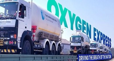 हरियाणा में पहली और दूसरी ऑक्‍सीजन एक्‍सप्रेस शीघ्र ही पहुंच जायेगी।  इनमे से एक ऑक्‍सीजन एक्‍सप्रेस मालगाडी राऊरकेला से आ रही है जिसमें 47 टन से अधिक ऑक्‍सीजन है। दूसरी ऑक्‍सीजन एक्‍सप्रेस में 32 टन तरल ऑक्‍सीजन अंगुल से लायी जा रही है। इन मालगाडि़यों से हरियाणा के लोगों को सुरक्षित और समयबद्ध ढंग से अत्‍यधिक जरूरी ऑक्‍सीजन की आपूर्ति हो सकेगी।