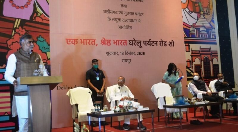 रायपुर :- केन्द्रीय पर्यटन एवं संस्कृति राज्य मंत्री (स्वतंत्र प्रभार) प्रहलाद पटेल ने आज “एक भारत श्रेष्ठ भारत” के तहत नवा रायपुर में घरेलू पर्यटन पर आयोजित रोड-शो का उद्घाटन किया। प्रदेश के पर्यटन मंत्री ताम्रध्वज साहू भी कार्यक्रम में शामिल हुए। इस रोड शो का आयोजन छत्तीसगढ़ पर्यटन मंडल, गुजरात पर्यटन और केंद्रीय पर्यटन मंत्रालय के मुंबई क्षेत्रीय कार्यालय द्वारा किया गया।