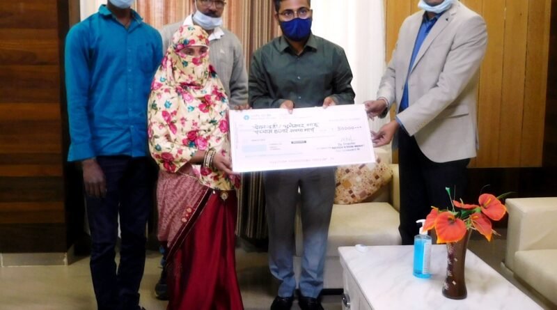 दिव्यांग दम्पत्ति को मिला 50 हजार रूपये का चेक