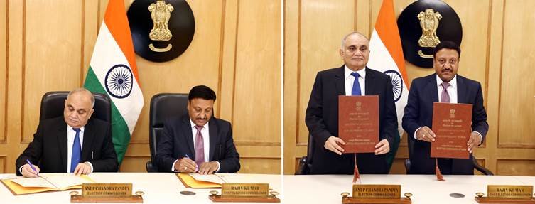 भारत के 14वें उपराष्ट्रपति के रूप में जगदीप धनखड़ के चुनाव के प्रमाणन पर मुख्य चुनाव आयुक्त राजीव कुमार और चुनाव आयुक्त अनूप चंद्र पांडे के हस्ताक्षर