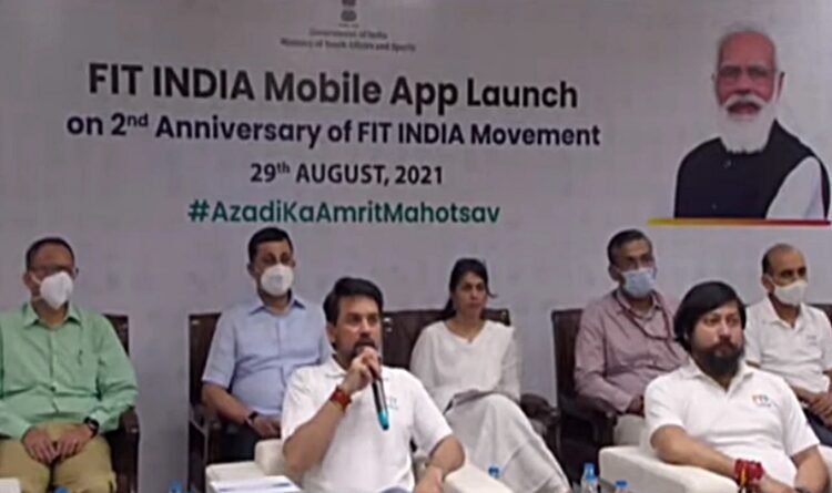 खेलमंत्री अनुराग सिंह ठाकुर ने फिट इंडिया मोबाइल एप लांच किया, उन्होंने लोगों से रोजाना आधा घंटा फिटनेस को देने का आह्वान किया