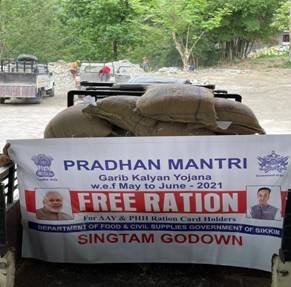 इस सहायता से “प्रधानमंत्री गरीब कल्याण अन्न योजना” (पीएम-जीकेएवाई III) का कार्यान्वयन फ़िलहाल दो महीने की अवधि यानी मई और जून 2021 के लिए उसी तरीके से शुरू किया गया है, जैसे पहले की तरह मुफ्त खाद्यान्न (चावल / गेहूं) के एक अतिरिक्त कोटा के अनुसार प्रति व्यक्ति प्रति माह 5 किलोग्राम राशन प्रदान करके किया गया था। इन वितरण कार्यों से एनएफएसए की दोनों श्रेणियों अर्थात् अंत्योदय अन्न योजना (एएवाई) और प्राथमिकता वाले परिवारों (पीएचएच) के तहत कवर किए गए लगभग 80 करोड़ लाभार्थियों को उनकी नियमित मासिक एनएफएसए पात्रता से अधिक खाद्यान्न प्राप्त होगा।
