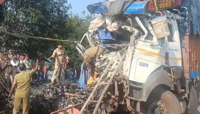 दो ट्रकें आपस में भिड़ी, चालक व क्लीनर की मौत
