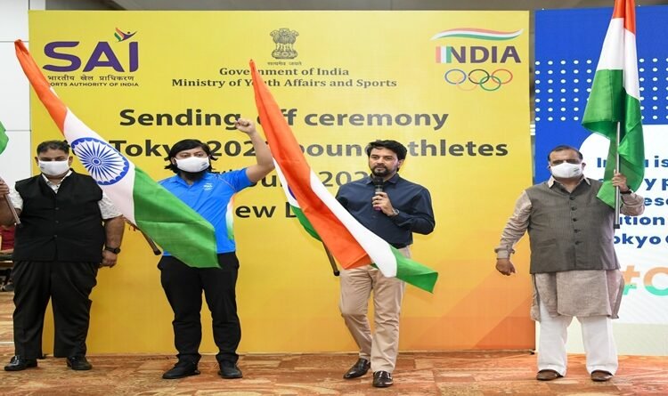 केन्‍द्रीय खेल मंत्री अनुराग ठाकुर और खेल राज्य मंत्री निशिथ प्रमाणिक ने कल ओलिम्पिक खेलों के लिए नई दिल्ली से तोक्‍यो के लिये भारतीय एथलीटों के पहले दल को औपचारिक रूप से विदाई दी।